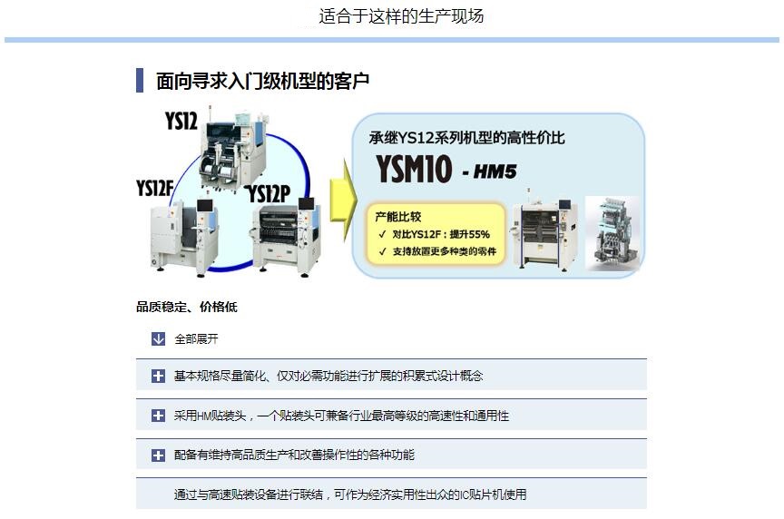 1.兼?zhèn)涓咚傩院屯ㄓ眯浴⒃谕墑e機(jī)型中實(shí)現(xiàn)更高水平貼裝能力的YSM系列入門級貼片機(jī)。